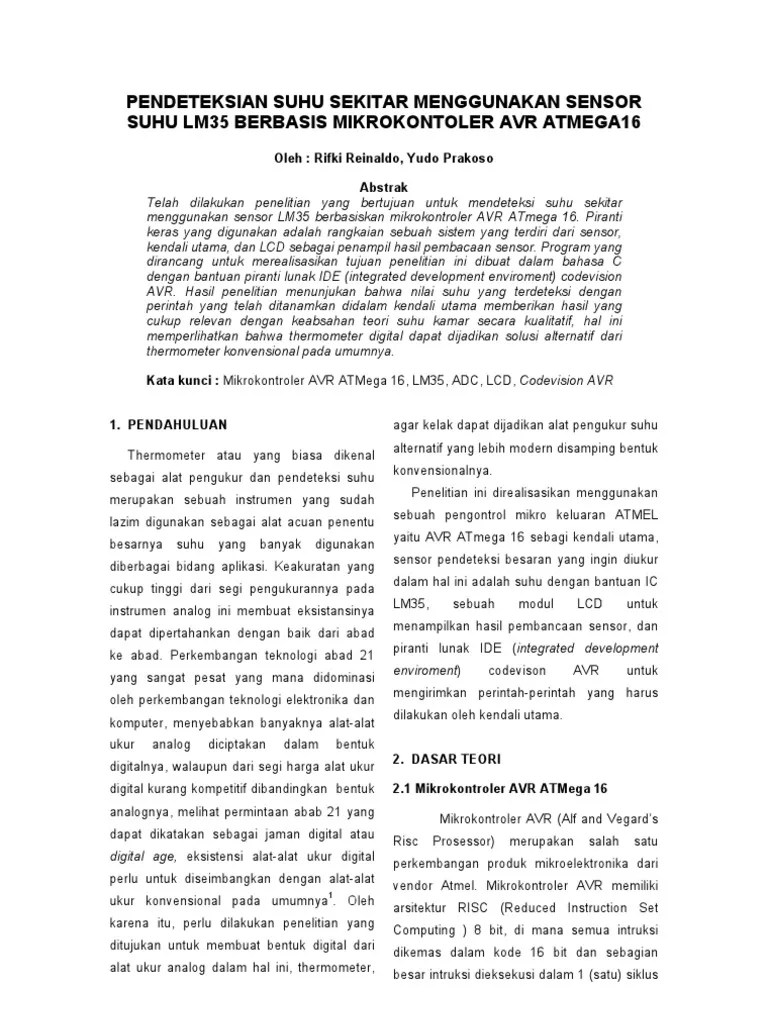 Dari pembahasan laporan tugas akhir di atas, dapat disimpulkan bahwa: View sensor suhu lm35.docx from electro 101 at bandung institute of technology. Seiring berkembangnya teknologi banyak orang yang mengolah alat ukur analog ini kedalam bentuk alat ukur digital. Besaran suhu tidak bisa langsung diterima oleh komponen elektronik, sehingga perlu perantara pengubah keadaan suhu menjadi besaran elektronik. Yang dirancang menggunakan sensor lm35 sebagai detector suhu ruang.